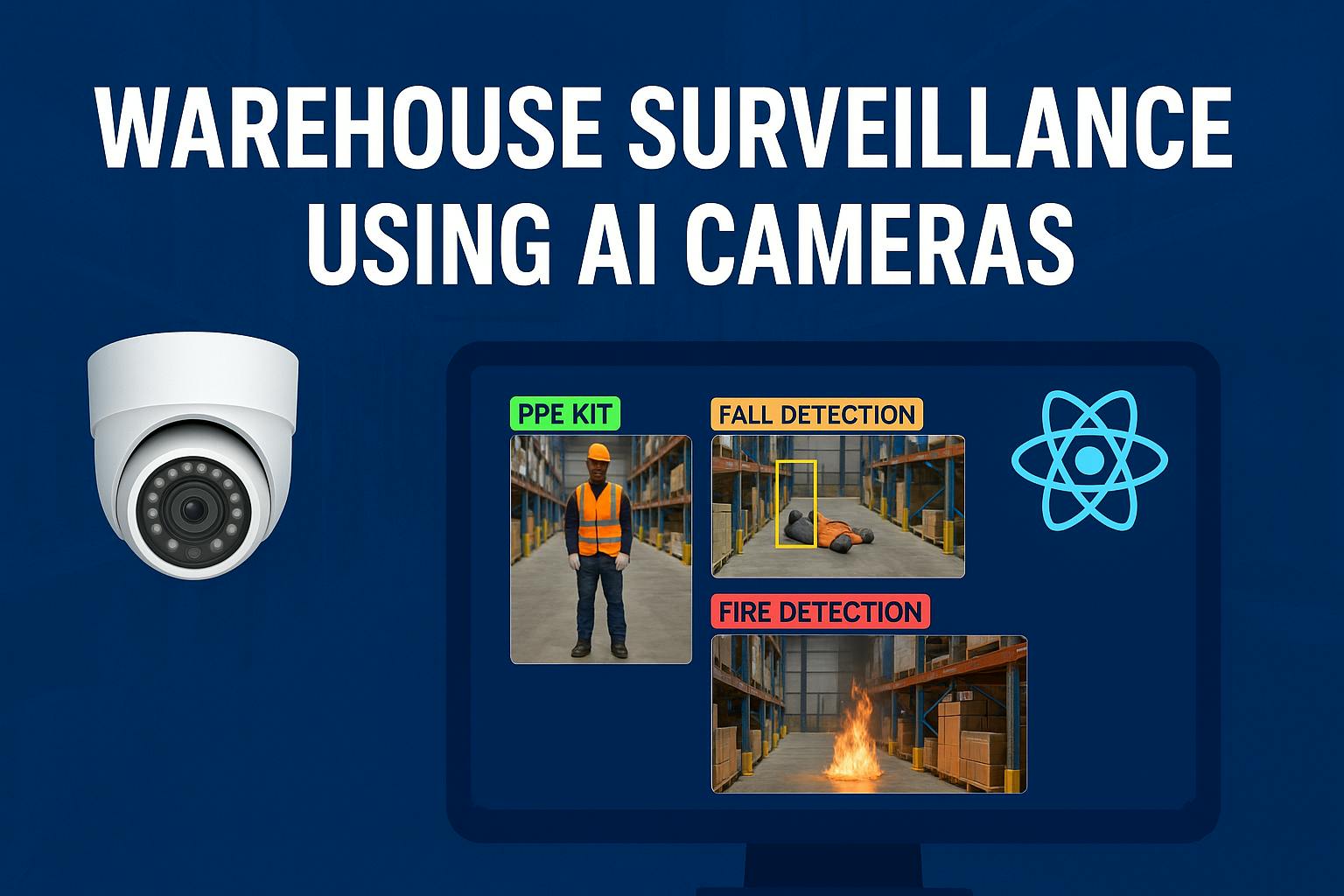 The AI-Powered Warehouse Surveillance System is a cutting-edge solution developed to enhance safety, security, and operational efficiency in warehouse environments. Addressing critical challenges in traditional surveillance such as manual monitoring errors, delayed incident response, and inadequate threat prediction this system integrates three specialized machine learning (ML) models for Personal Protective Equipment (PPE) compliance, fall detection, and fire detection. Built with a robust architecture combining YOLOv8 for real-time object detection, a Flask API backend, and a React-based frontend dashboard, the system delivers automated threat detection, real-time alerts, and actionable insights.